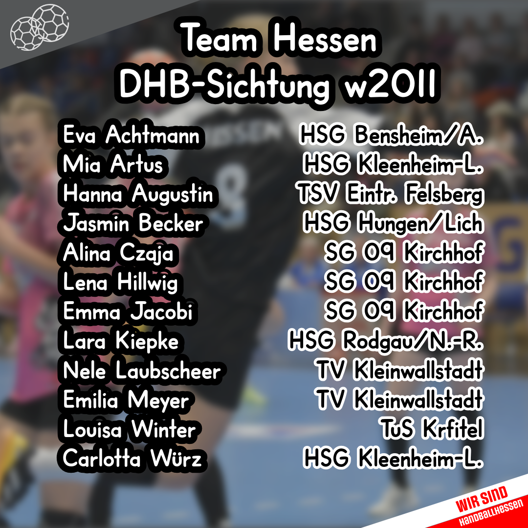 Vom 20.02. bis 22.02. findet in Albstadt die DHB-Sichtung für den Jahrgang 2011 statt. Wir drücken unseren Mädels die Daumen und wünschen viel Spaß und Erfolg! Im Bild findet ihr unseren Kader für die Sichtung