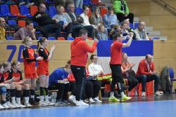 Dort wartete nur knapp 2,5 Stunden später der Favorit und spätere Turniersieger, der HV Sachsen. Die Sachsen hatten ihr Viertelfinale bereits um 13:30 Uhr und somit ein wenig mehr Regenration und Vorbereitung. Das merkte man in den ersten Minuten, die unser Team ein wenig verschlief und nach zehn Minuten mit 6:1 zurücklag. Es wurde sich aber nie aufgegeben und kurz vor Schluss gelang der Anschlusstreffer zum 26:25. Die Zeit reichte aber nicht mehr aus, um noch den Ausgleich zu erzielen.