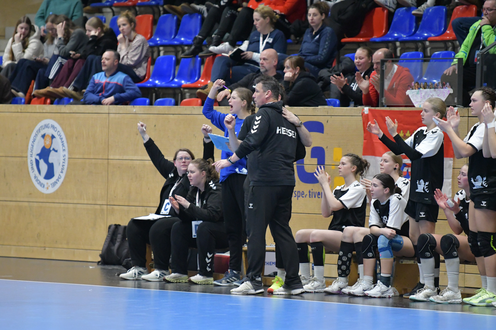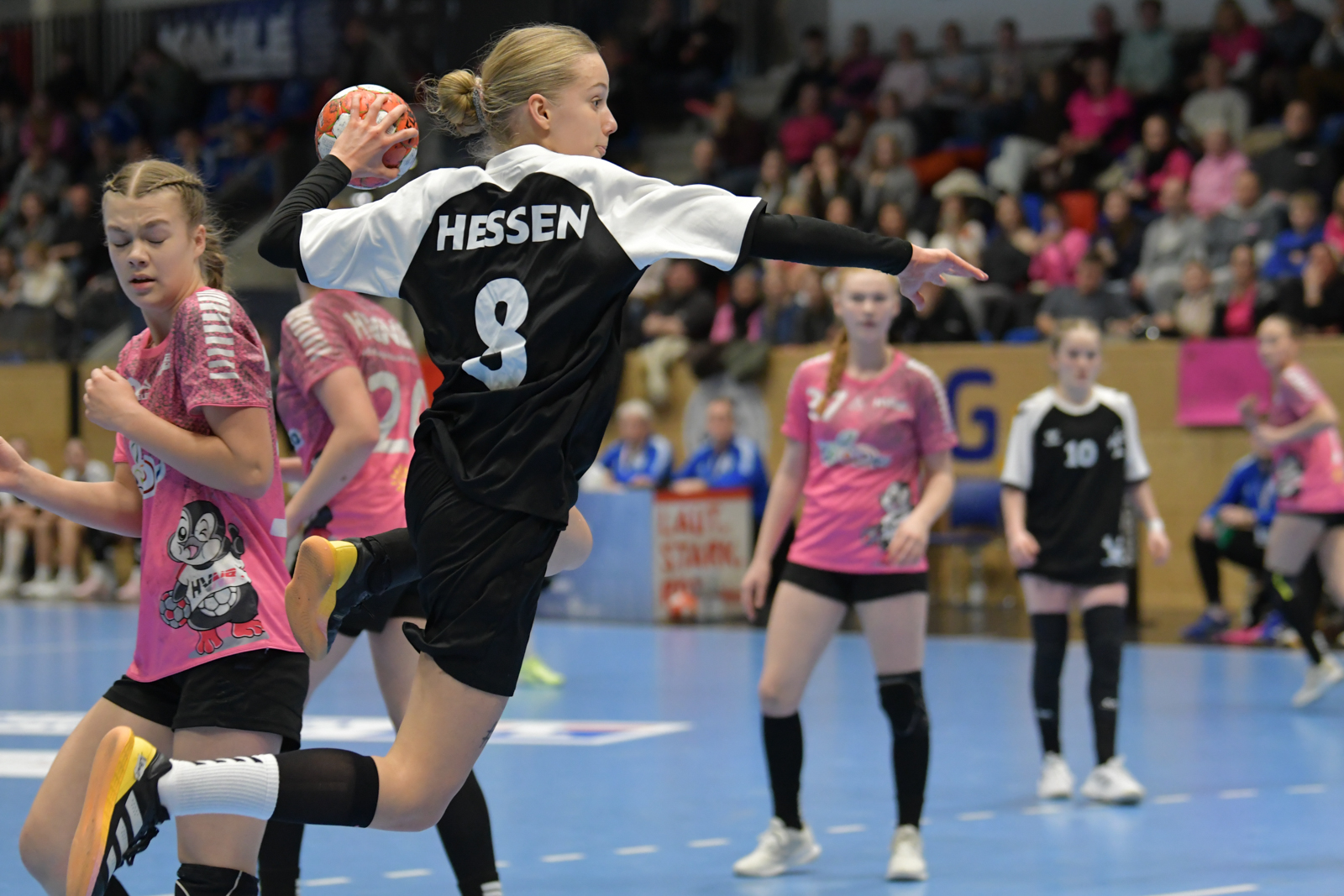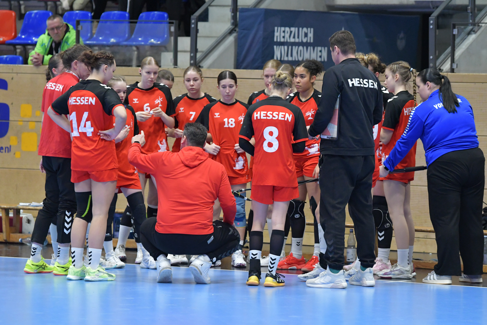 Auch 2026 startete das Handball-Jahr mit dem weiblichen Deutschland-Cup in Hannover. Beim Turnier der Jahrgänge 2010 und jünger ging Team Hessen als Titelverteidiger an den Start. Dass man auch dieses Jahr wieder um die vorderen Plätze mitspielen wollte, zeigten die Mädels schon in der Gruppenphase. Gegen Nordrhein (24:19), Sachsen-Anhalt (34:18) und Westfalen (30:23) gelangen drei Siege und somit stand der erste Platz in der Gruppe C fest. Mit nur 60 Gegentoren konnte man außerdem als drittbeste Abwehr aller vier Gruppen die Gruppenphase beenden. Hier auch ein großes Lob an die Torfrauen, welche mit zahlreichen tollen Paraden einen großen Teil zur starken Abwehr beitrugen.